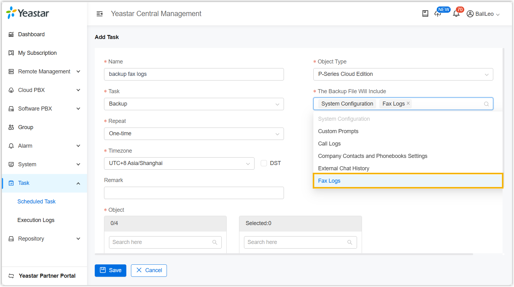 | Updated | Updated description for Task: Added support for backing up Fax Logs when creating a backup task for P-Series PBX System. | ![]() |