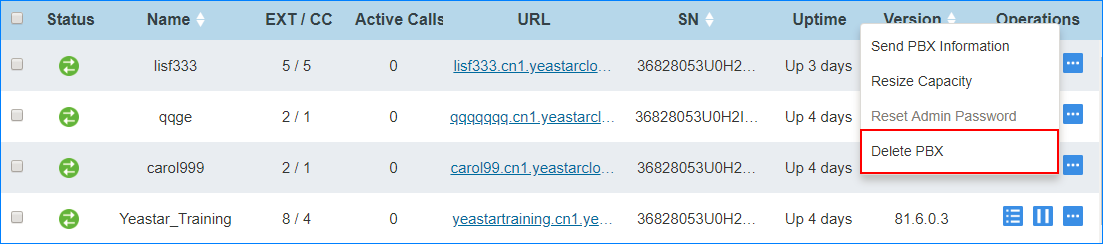 To save the YMP capacity, you can delete a PBX if the associated customer no longer needs the PBX.