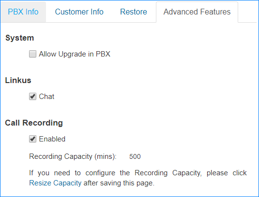 You can decide whether to enable the Linkus Chat, Firmware Upgrade, Call Recording functions on your customers' PBXs.