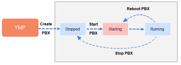 The PBX status on YMP web page gets updated in real time as the PBX running status changes.