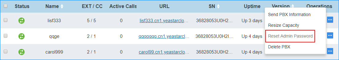 If your customer forgets the password of PBX web login, you can reset the admin password and send a password reset link to the customer.