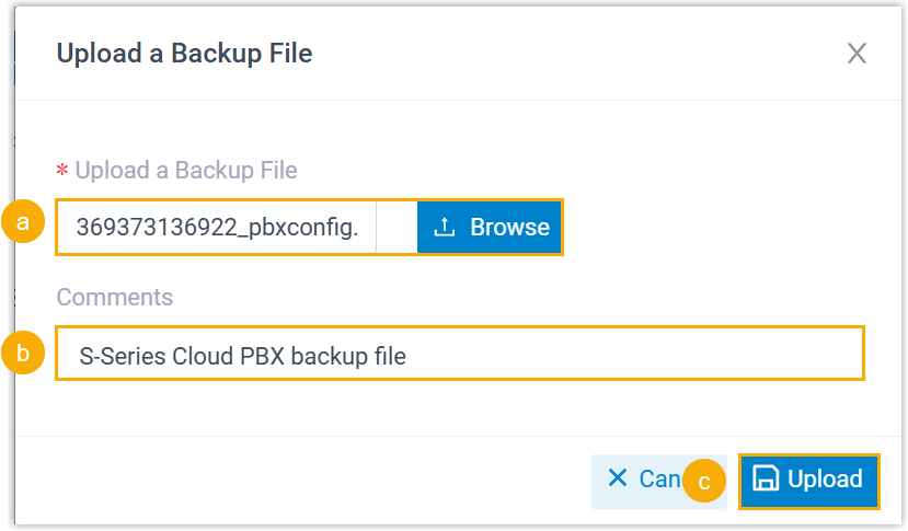 Click Browse to select the backup file of Cloud PBX.