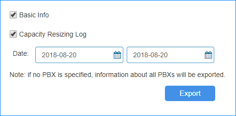 - Capacity Resizing Log: The capacity resizing log for the PBX.