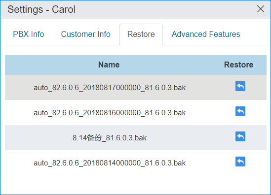 If there is a problem of your customer's PBX, you can restore the PBX from a backup.