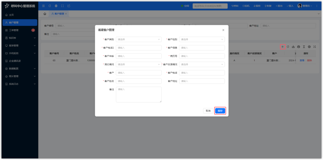 添加客户管理 1. 前往 客户管理,点击 新建客户管理。 2. 在固定字段中输入客户编号、客户电话、客户姓名、客户地址和备注。注: 你可以在字段配置中修改这些 固定客户字段。 3. 在其他自定义字段中输入你想要填写的信息。注: 你可以在字段配置中修改或新建 自定义字段。 4. 点击 保存。