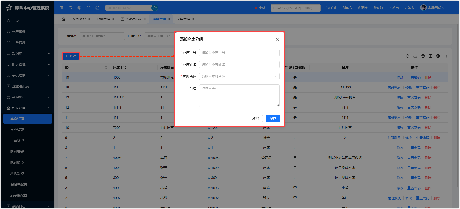 管理当前呼叫中心中所有人员,包括座席和管理员。本节旨在介绍如何添加座席、 修改座席信息、删除座席和重置座席密码。