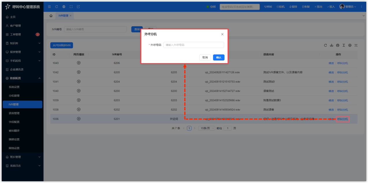 - 选择要外呼的 IVR。