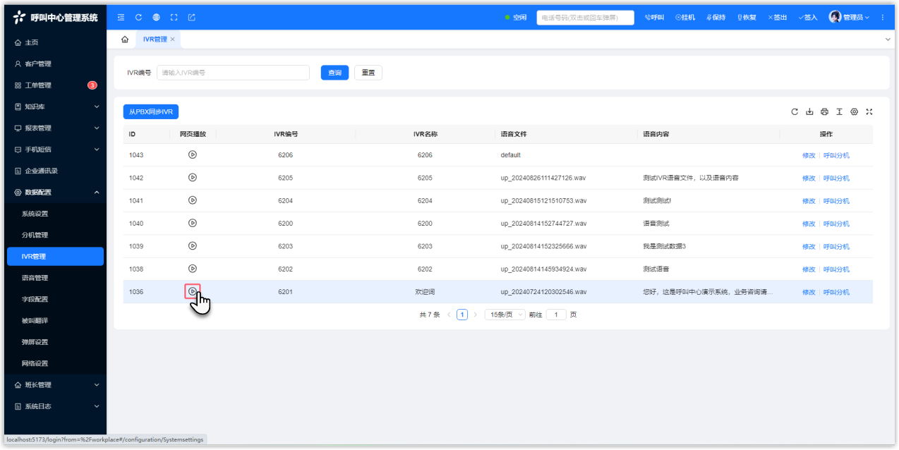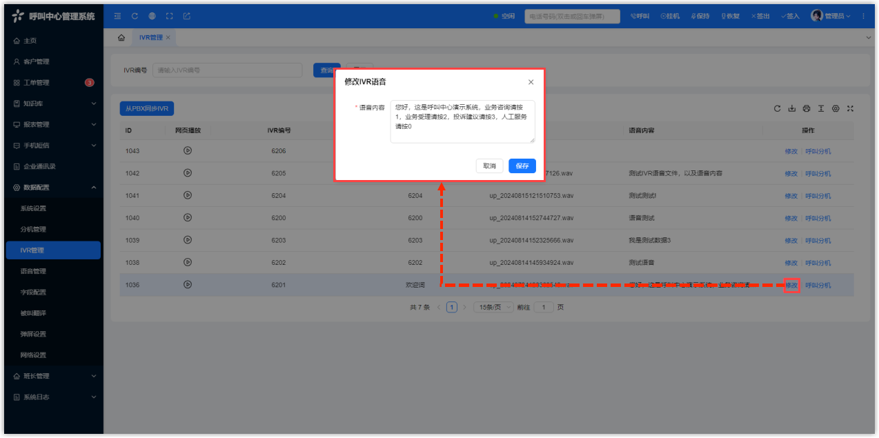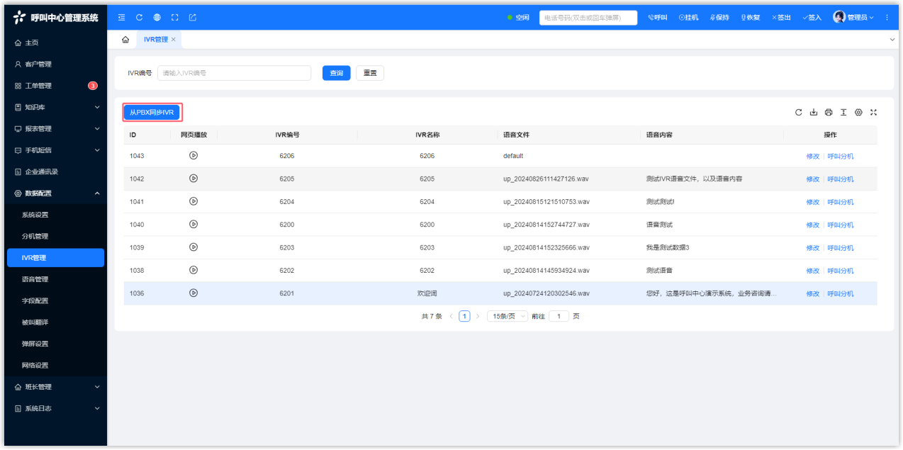 在 PBX 中修改 IVR 后,需要在呼叫中心同步 IVR,从而保持最新数据。