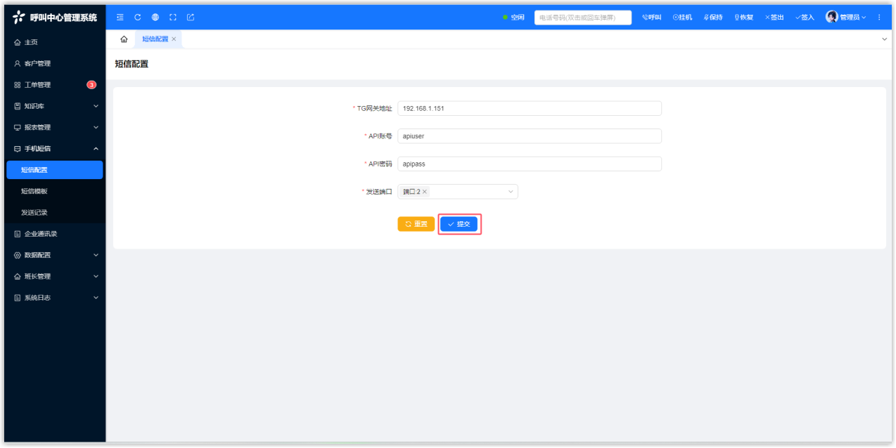 2. 输入 TG 网关地址、API 账号和 API 密码。