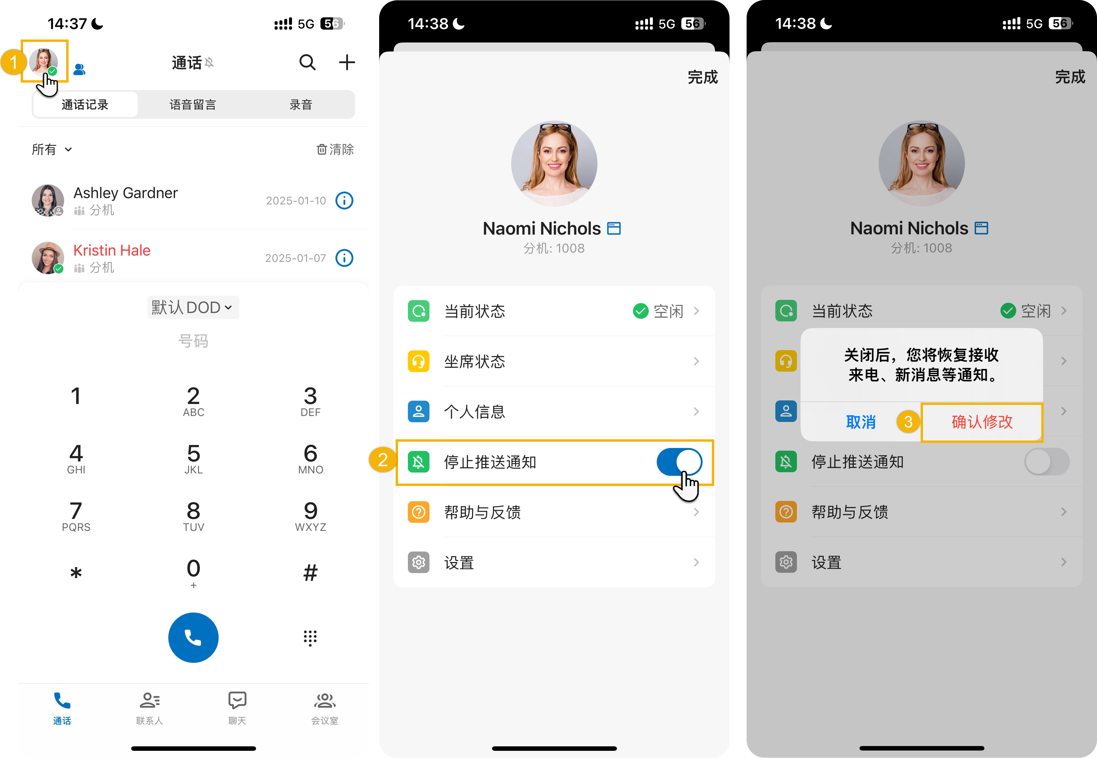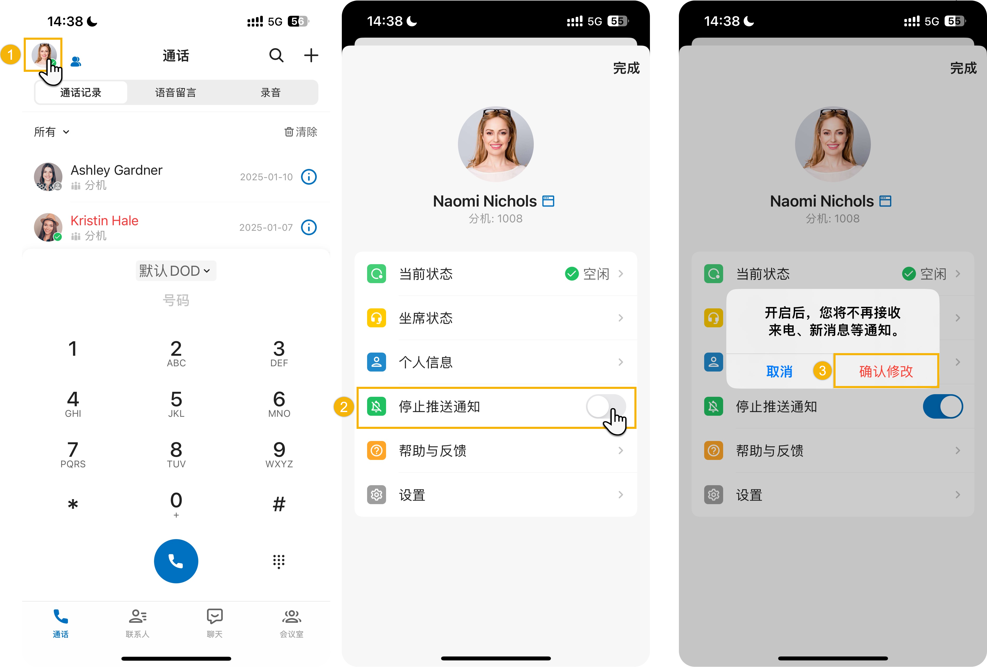 当禁用推送通知时,如果 Linkus 在手机后台运行时分机收到来电、新消息等,Linkus 将不会被唤醒,你不会收到通知。