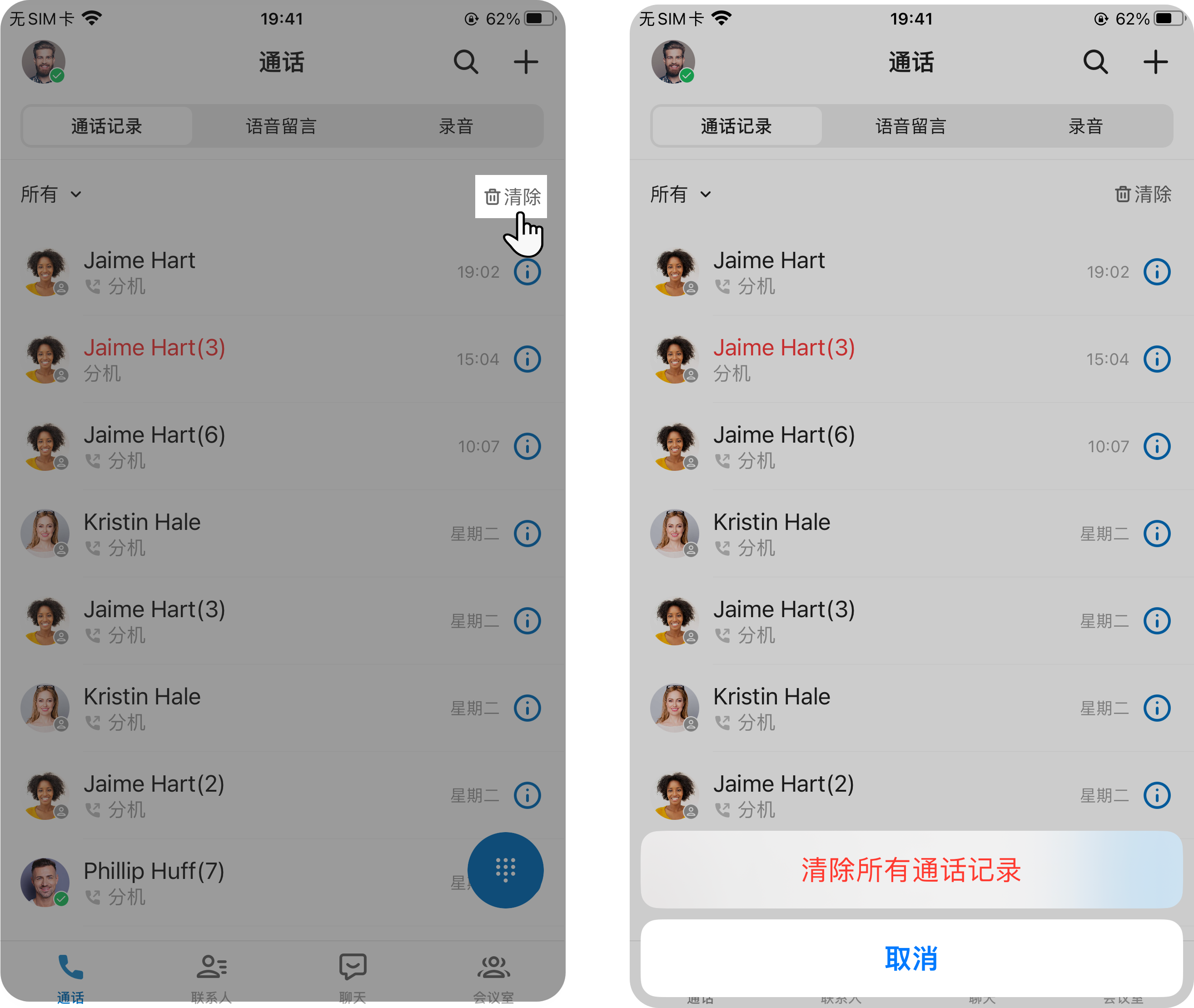 本文介绍如何在 Linkus 手机端上查看和删除通话记录 (包括拨打的、接听的和未接的电话)。
