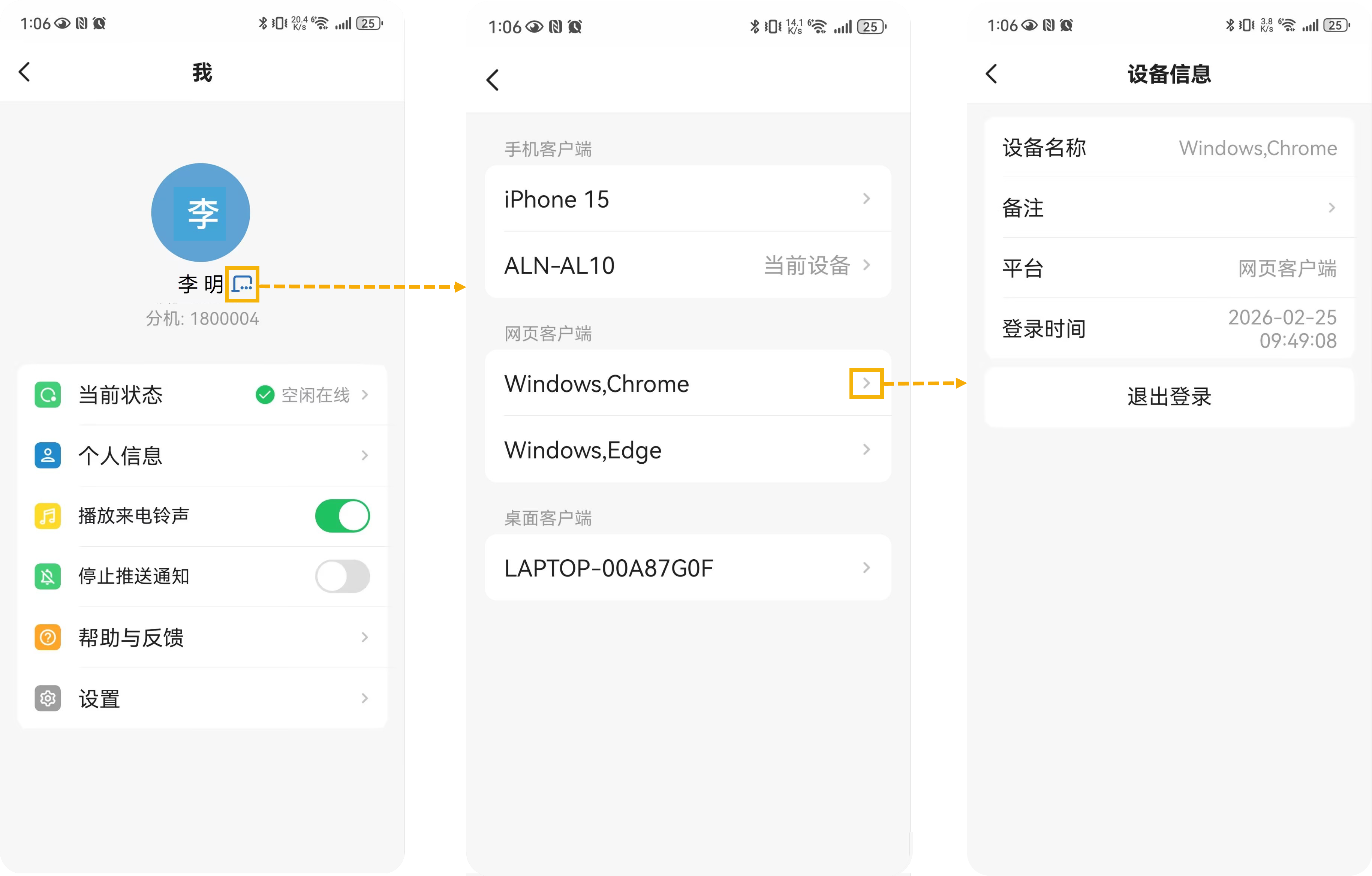 - 支持管理你的分机所登录的所有 Linkus UC 客户端 (路径:)。