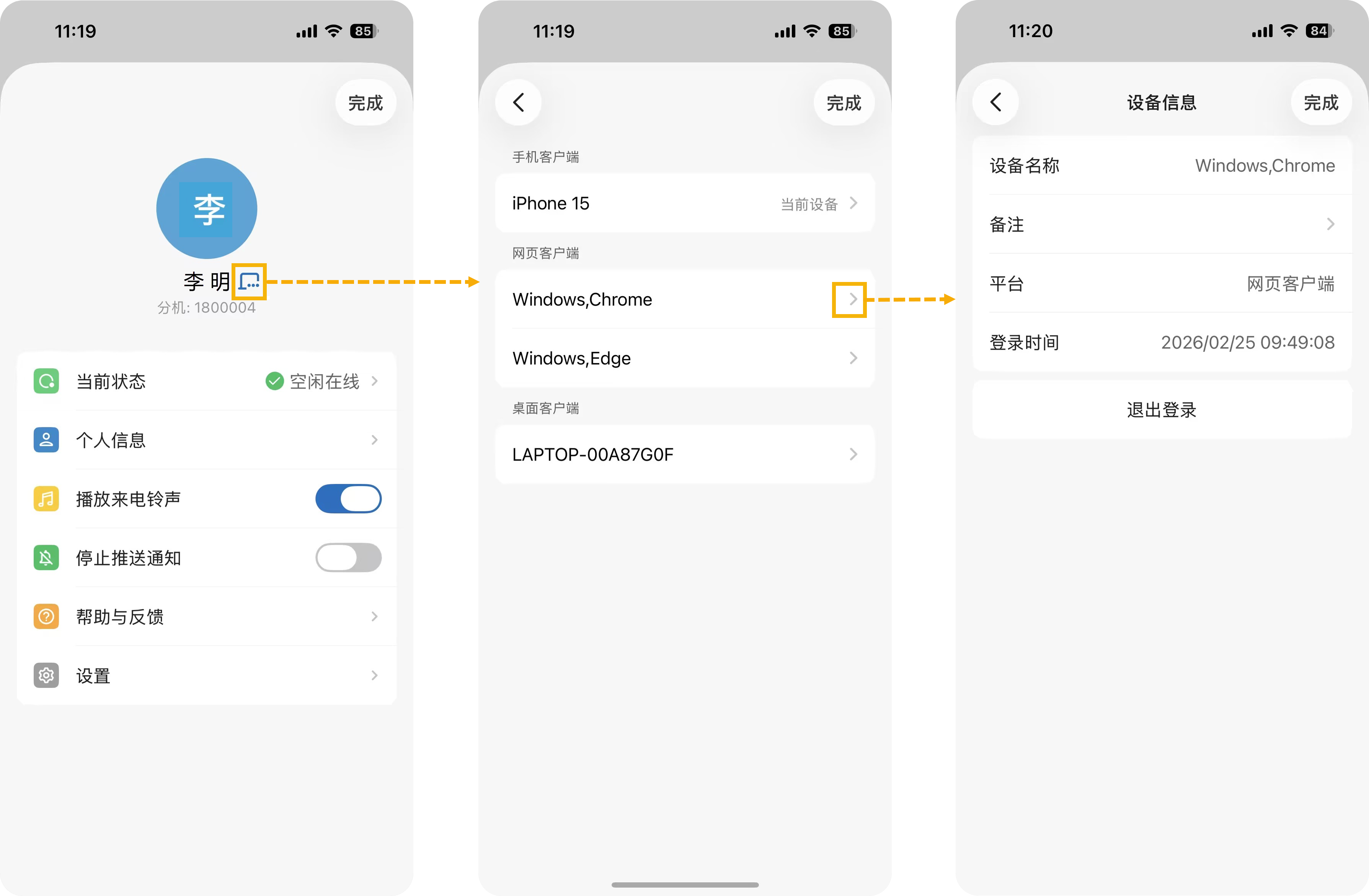 - 支持管理你的分机所登录的所有 Linkus UC 客户端 (路径:)。