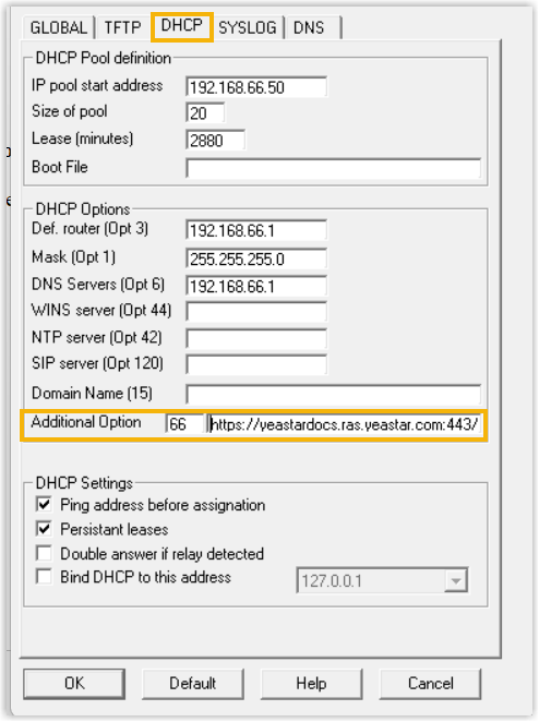- 配置 DHCP 服务器,并将 DHCP option 66 设置为配置链接。IP 话机将通过此配置链接从 PBX 上下载配置文件,并自动应用配置。