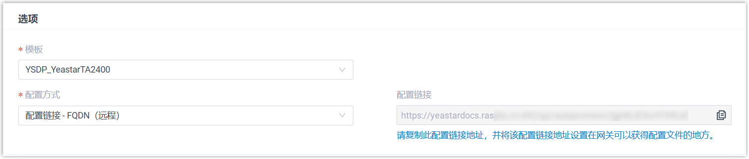 - 在 选项 栏,完成以下设置,为网关生成配置文件。