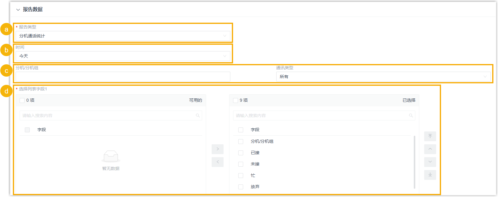 报告 筛选条件 分机 分机通话活动 - 分机/分机组