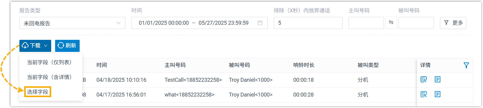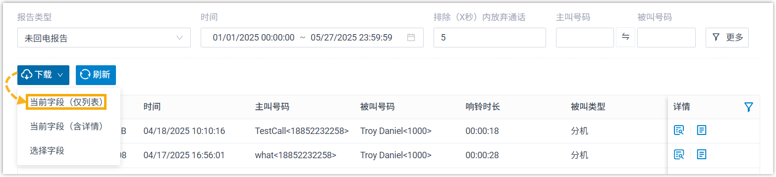 未回电报告 全面记录所有未接的外线来电,包括回拨状态及详细信息,帮助跟踪未接来电及后续的跟进处理。本文介绍如何获取和下载该报告,并详细解释关键指标。