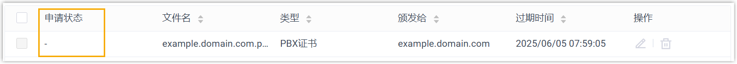 - 若证书申请成功,则 申请状态 显示为 “-”。