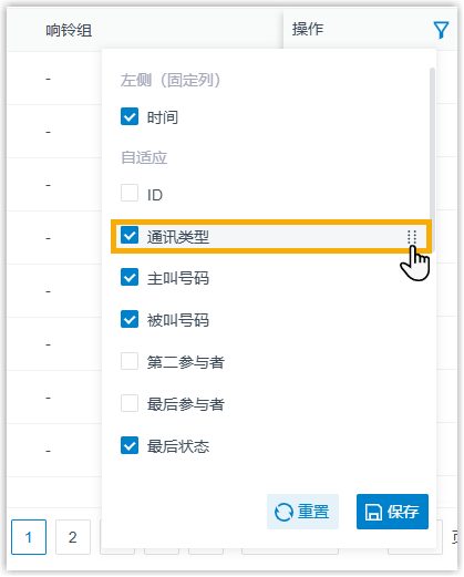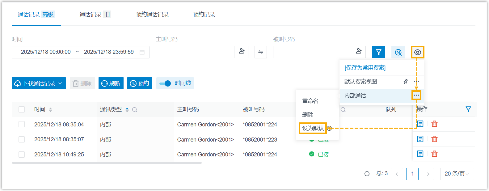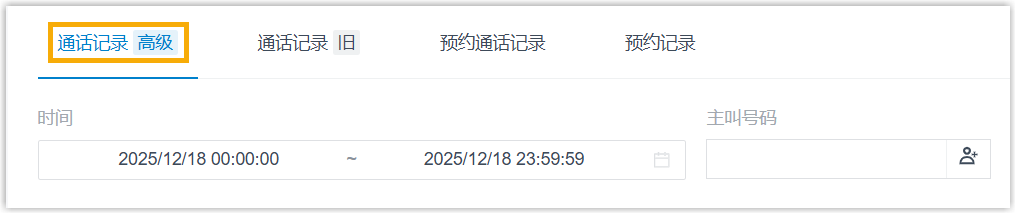 - 设置通话记录的基础筛选条件,用于筛选列表中的数据。