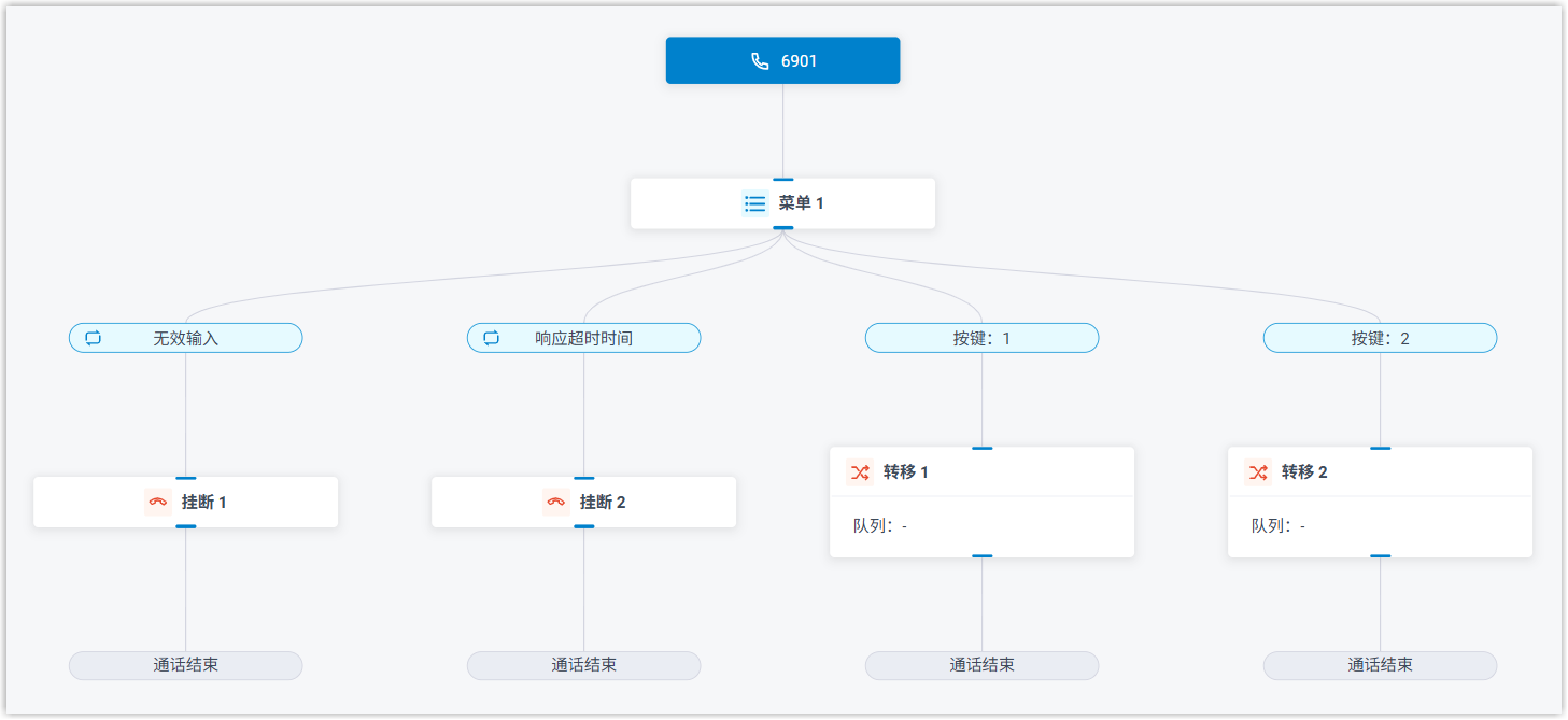 该模板支持根据来电者的按键输入,将来电路由至不同目的地。 |