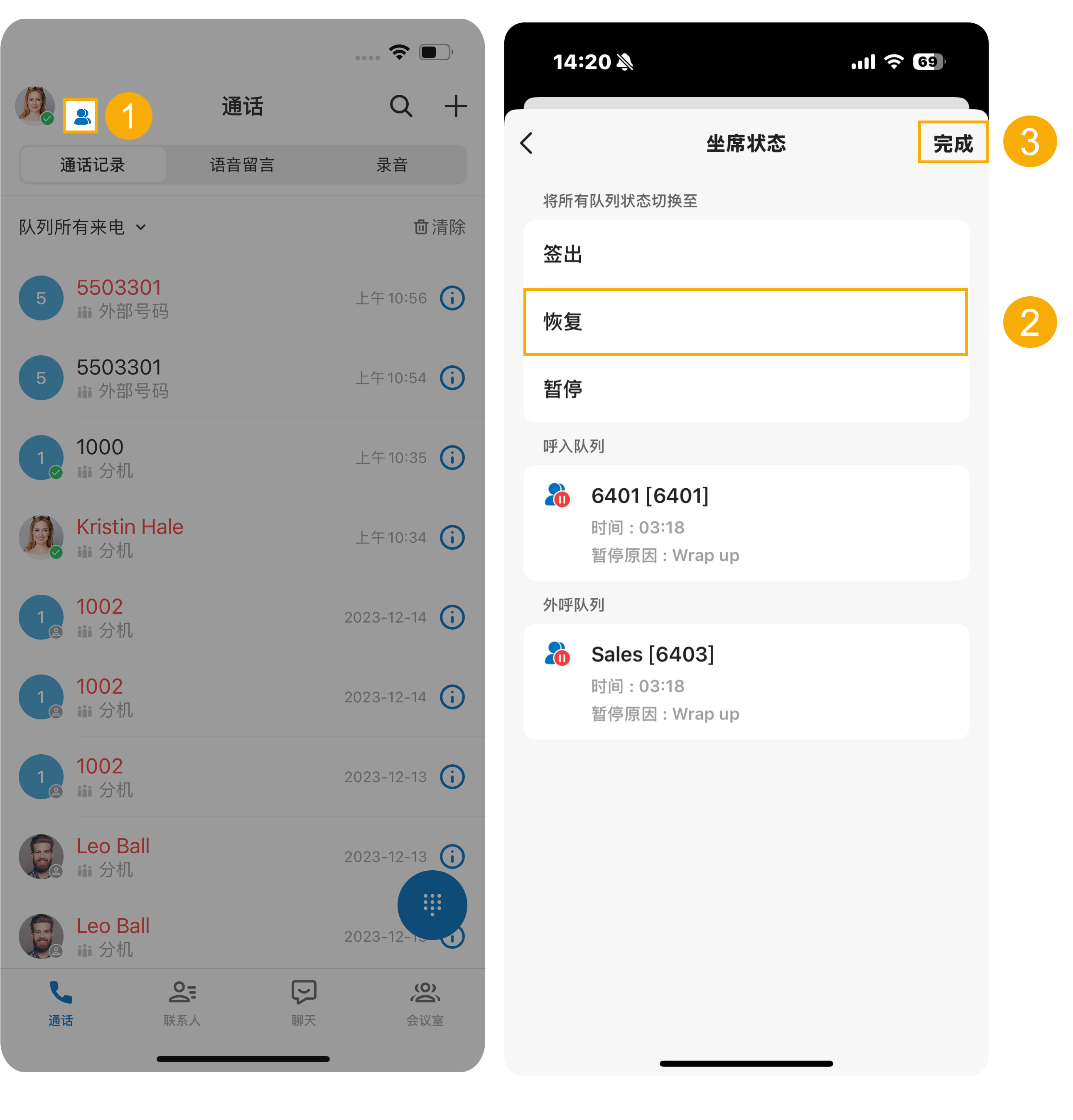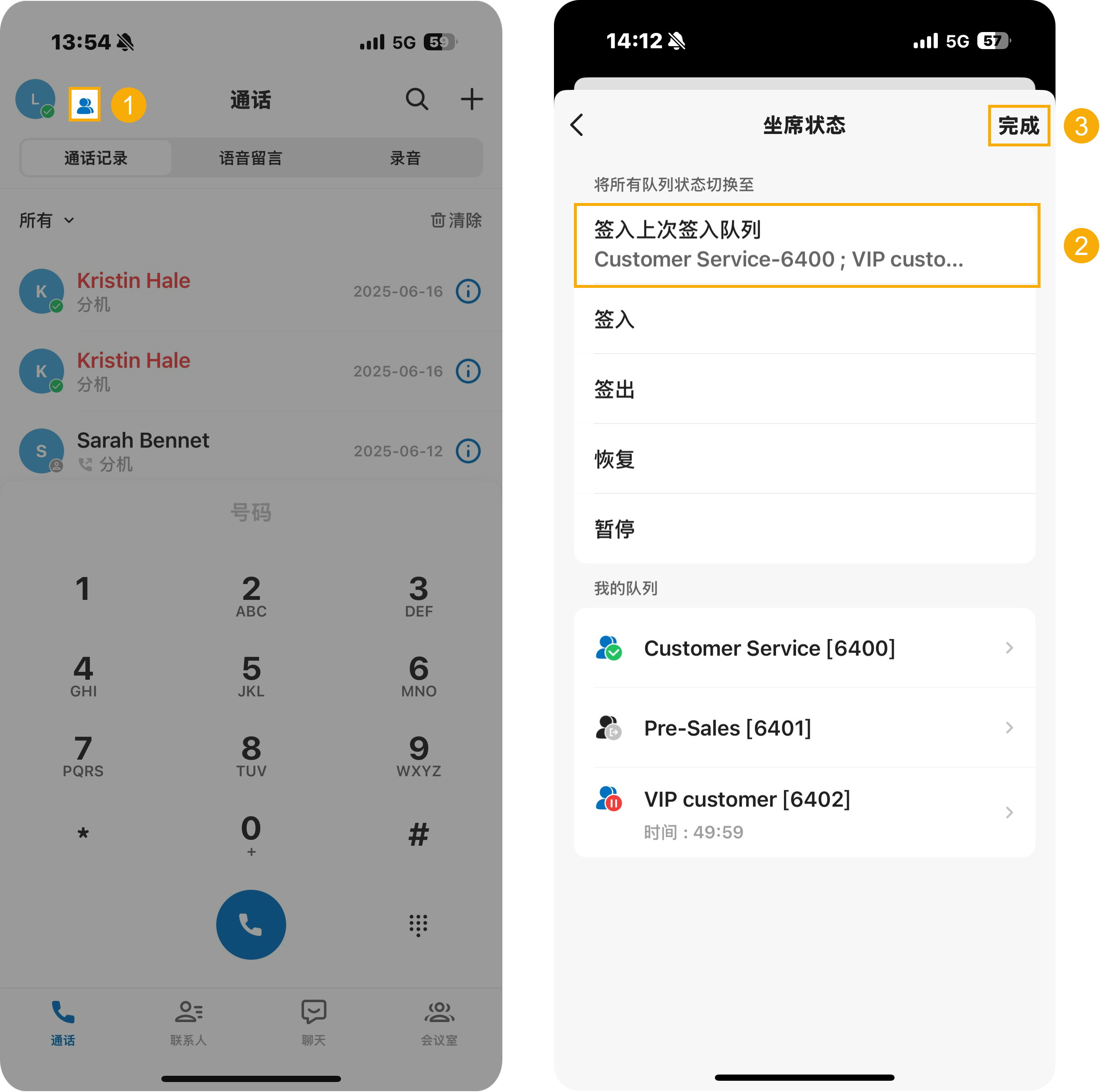 作为隶属于一个队列或多个队列的坐席,你可以在 Linkus 手机端上更改自己在特定队列或所有队列中的状态。本文介绍如何签入/签出队列,以及如何暂停/恢复接收队列来电。