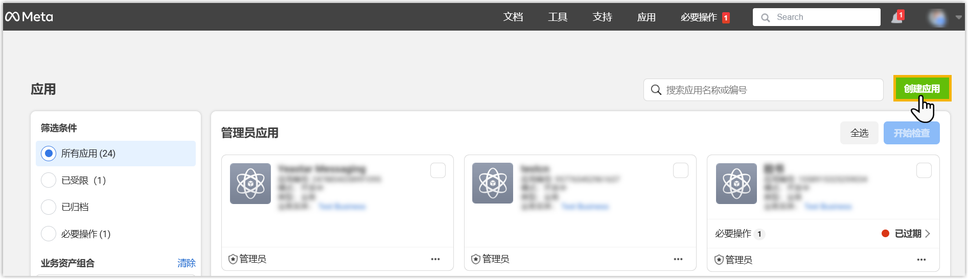 - 登录 Meta 开发者平台,从顶部菜单栏进入
