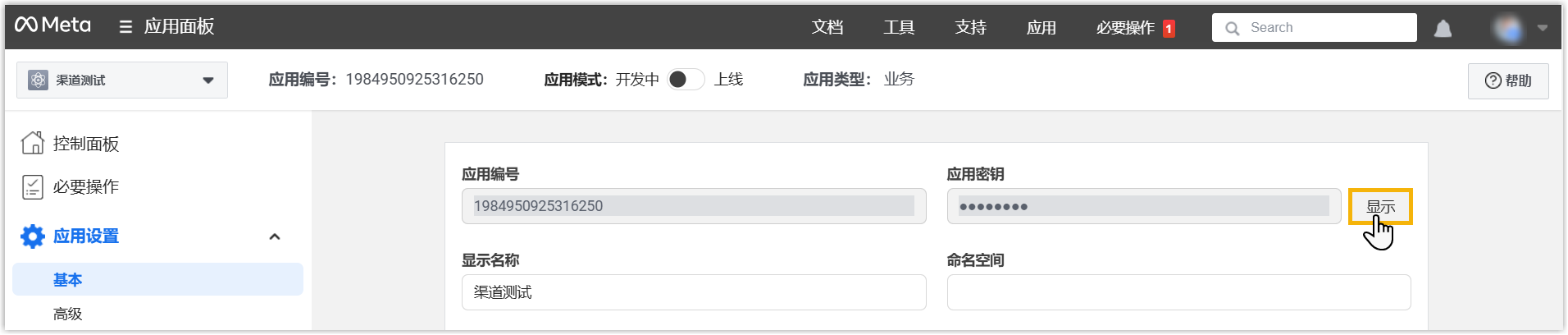 - 在 Meta 开发者平台,进入 Meta 应用的 Messenger API 设置。
