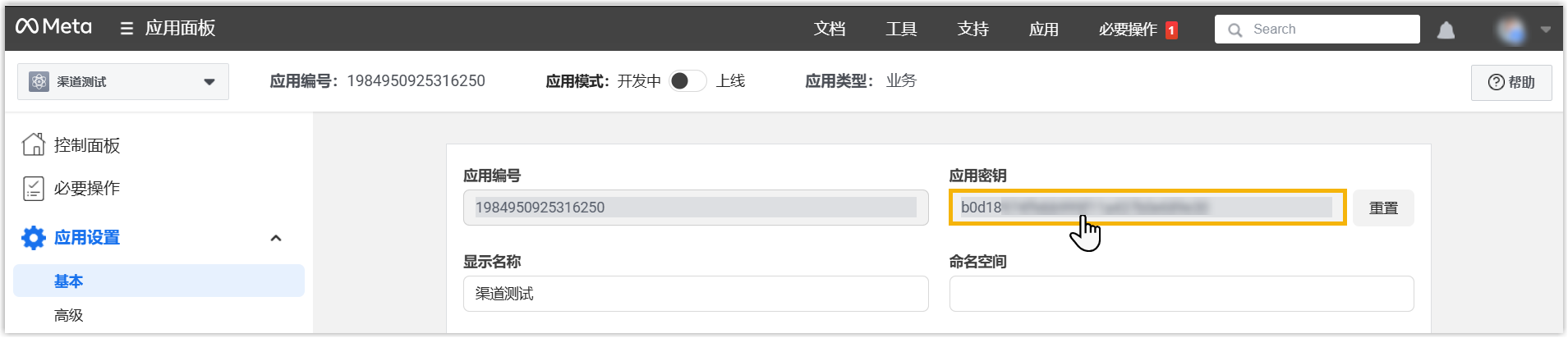 - App Secret:粘贴 在 Meta 开发者平台上获取的应用密钥。