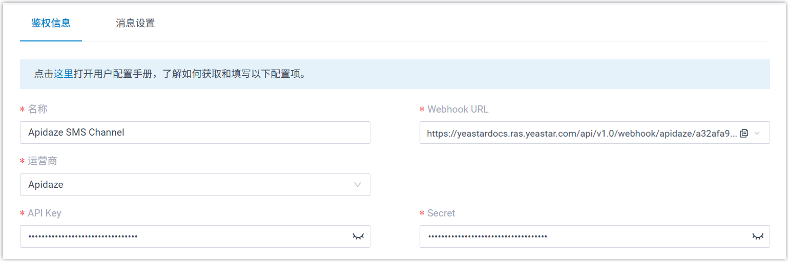 - 在 鉴权信息 栏,填写 Apidaze 的鉴权信息。
