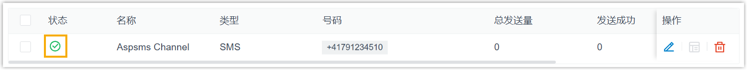 - 你已成功创建了消息渠道,可在列表中查看到此渠道的 状态 显示为