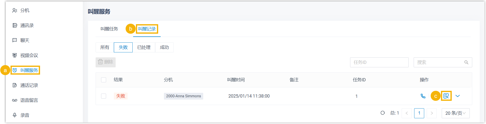 - 登录 Linkus 桌面端/网页端,进入 叫醒服务。