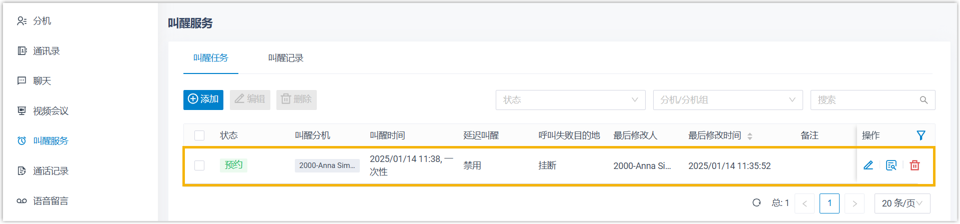 - 在 叫醒任务 页签下,添加叫醒任务。