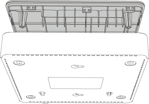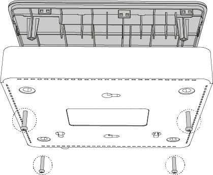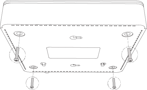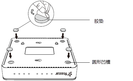 - 将胶垫分别黏贴在位于机壳底部四角的圆形凹槽中。