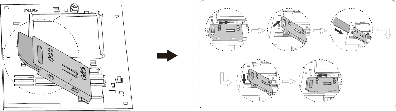 - 将 SIM 卡安装到 GSM/3G/4G LTE 模块上。注: 如果没有安装 GSM/3G/4G LTE 模块,请忽略此步骤。