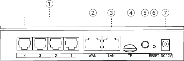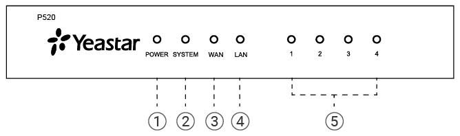 | ⑤ | 1-4 LED (RJ11 接口状态灯) | RJ11 接口状态。