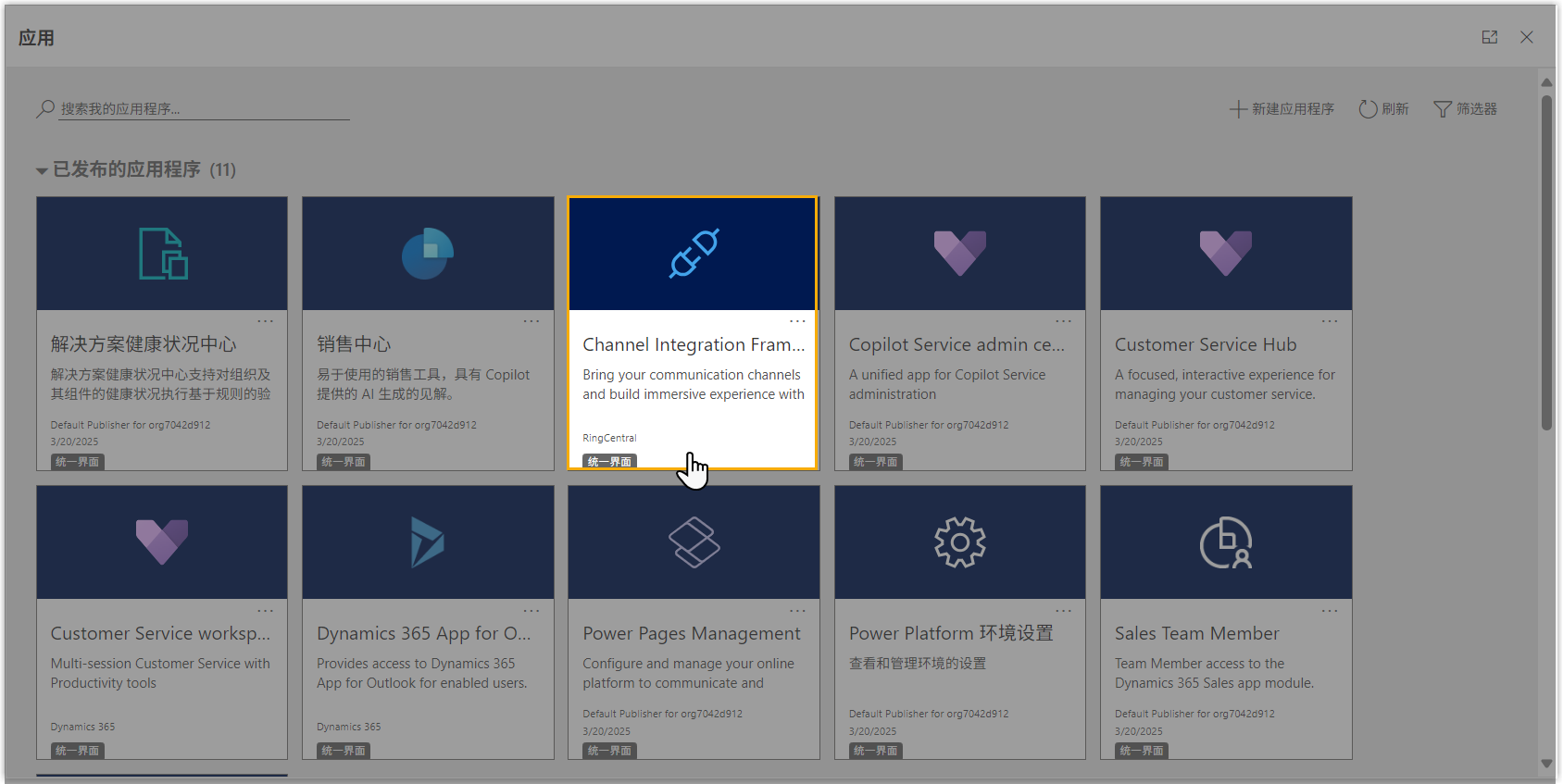 - 在 应用 页面中,搜索并选择 Channel Integration