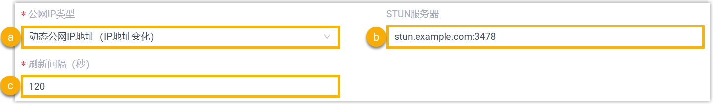 STUN 服务器请求公网 IP 地址的时间间隔。注: 支持的值范围为 30 到 3600。