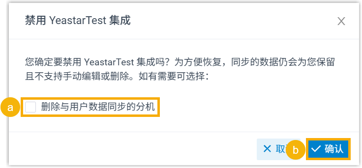 - 状态 栏显示 “禁用”,表示集成功能被暂停。