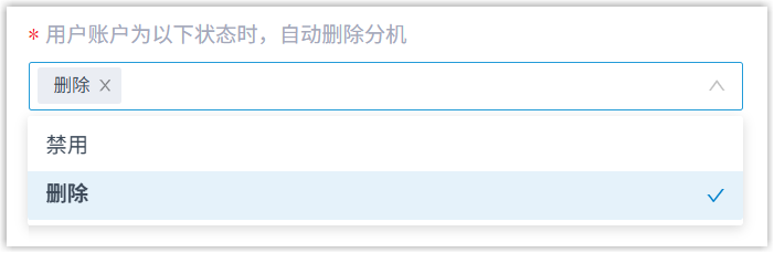 - 设置分机管理规则,决定当用户同步范围或用户账户状态变更时,如何自动处理与用户绑定的分机。