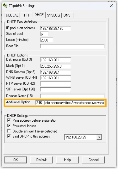 以下将以 Tftpd64 为例介绍如何配置 option 246。