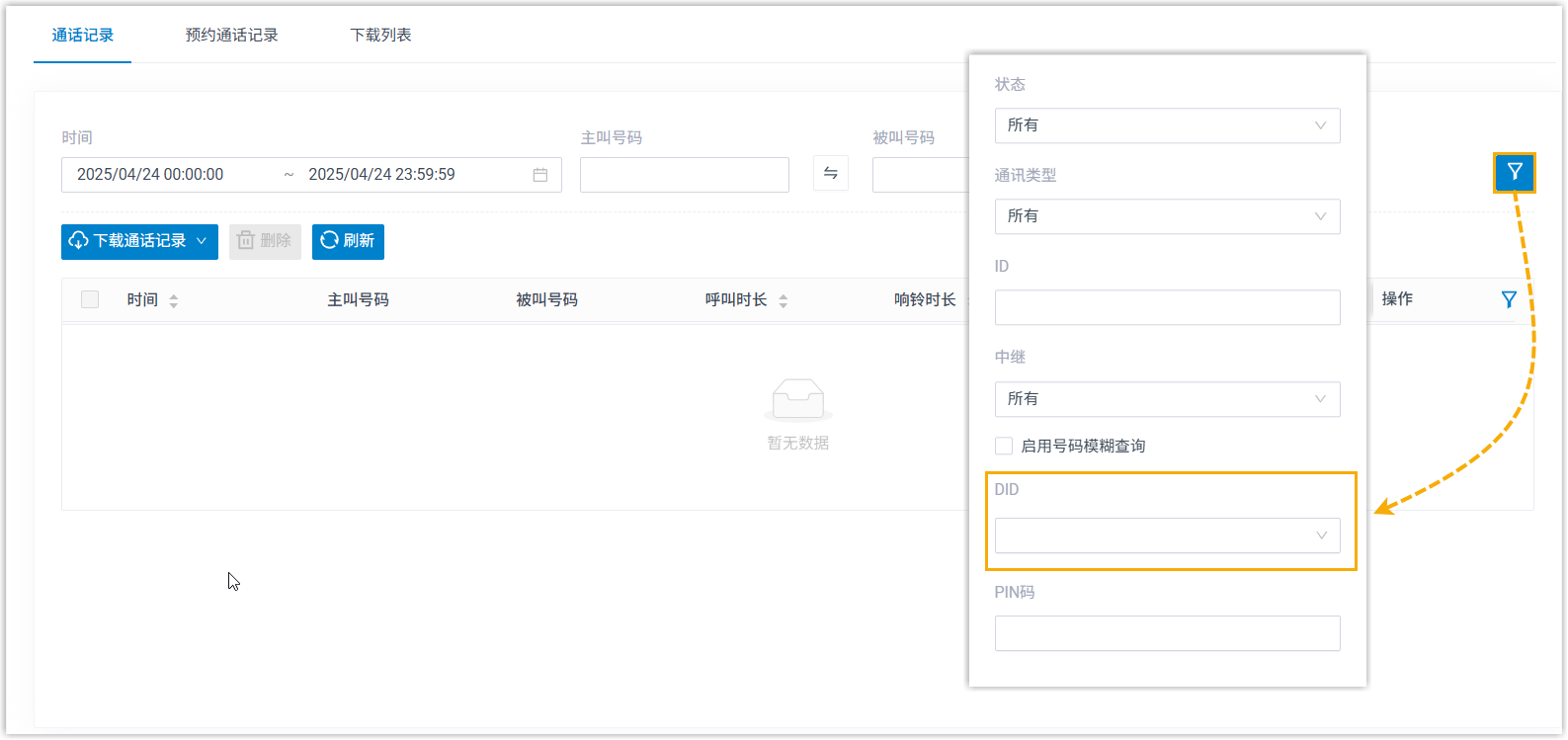 - 增加 DID 筛选条件,可通过 DID 号码筛选指定 CDR。