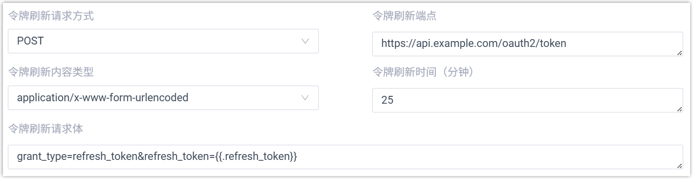 - 在使用 OAuth2 和 Bearer Token 身份认证方式时,可在模板中配置令牌刷新相关设置。