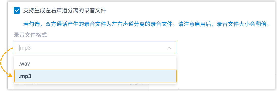 - 优化录音左右声道分离功能:启用后,你可以在 录音文件格式 中设置录音文件的下载格式,此处设置的格式应用于系统中所有录音文件的下载。