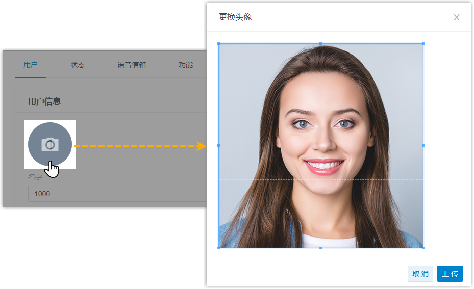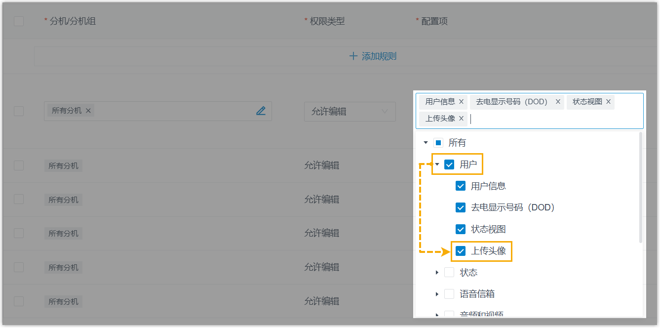- 支持在单个或批量创建及编辑分机时上传头像 (路径:)。注: 图片格式必须为