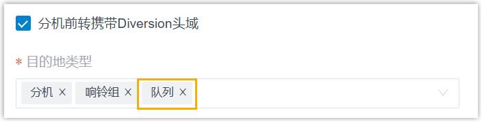 - 分机前转携带Diversion头域 设置新增目的地类型