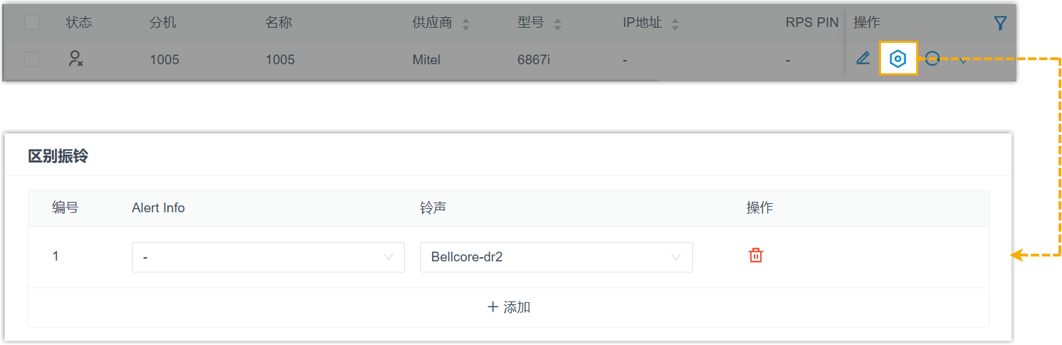 - 为自动配置的 Mitel 话机新增 区别振铃 设置 (路径:),可配置Alert Info (提示信息) 和对应铃声。