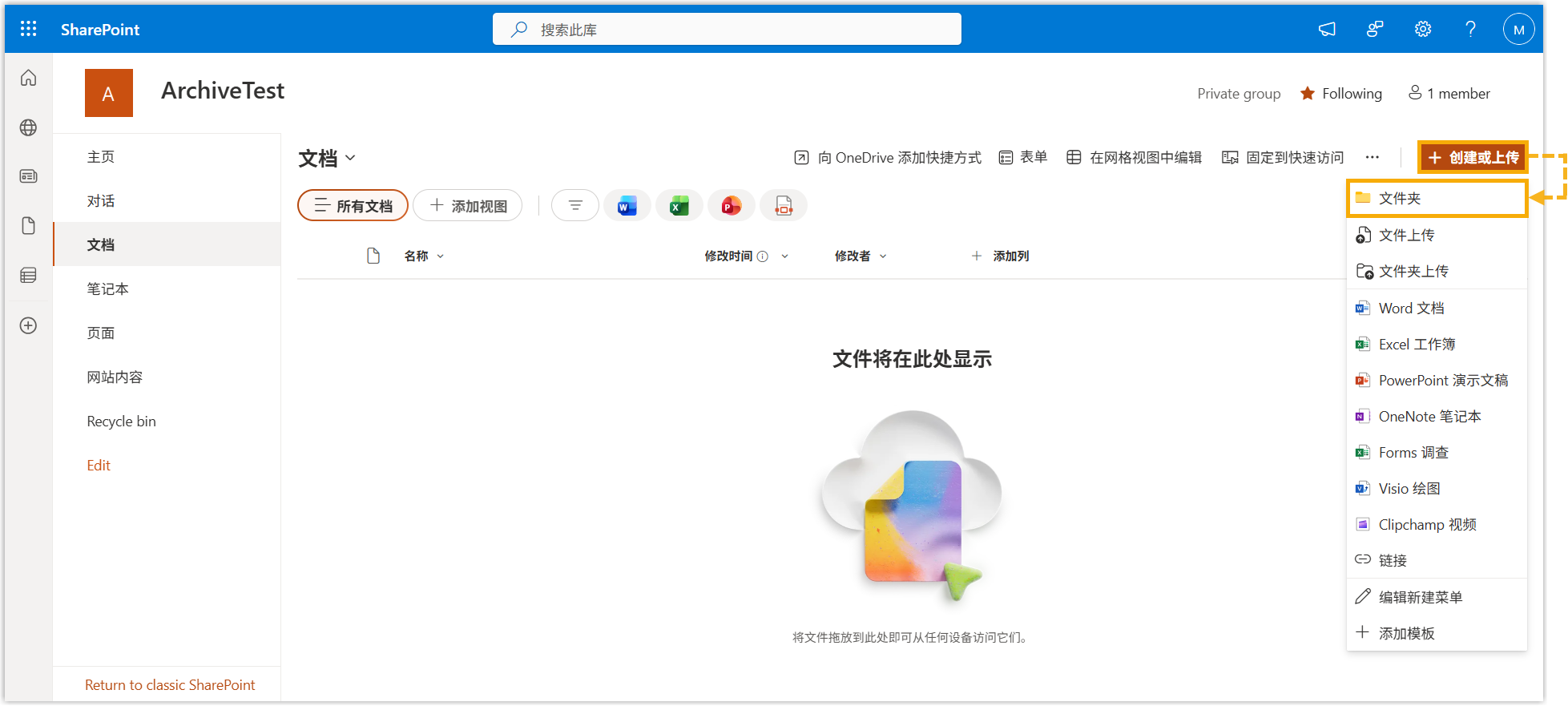 步骤三、在 Microsoft SharePoint 创建文件夹