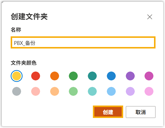 - 在 名称 栏,填写一个名称帮助你识别该文件夹,接着点击