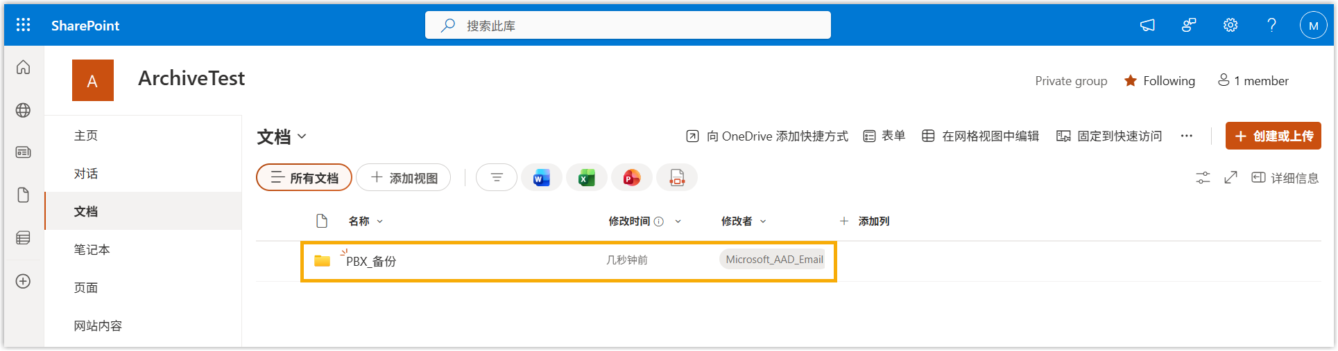 - 在 SharePoint 站点创建文件夹,用于存储 PBX 文件