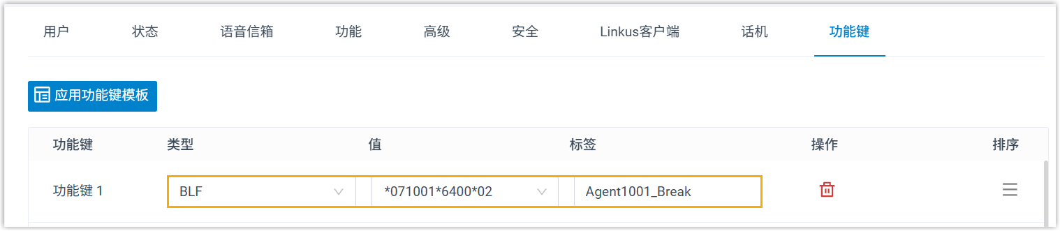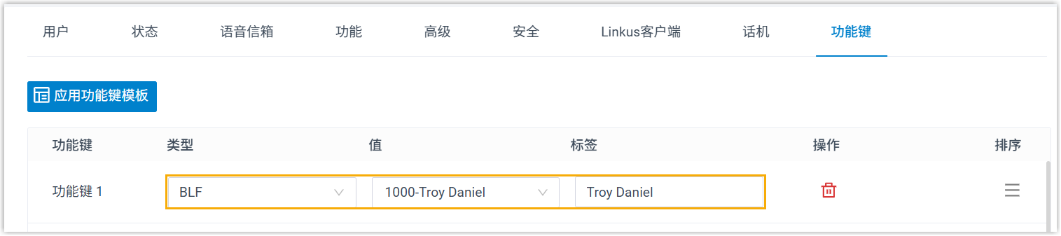 - 点击 功能键 页签,然后根据需要配置 BLF 按键。